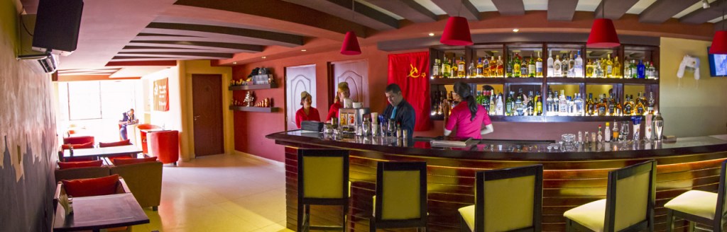 Si quedara alguna duda sobre esta simbiosis, el destino al que nos lleva el Chaika la disipa: el cachalote de los taxis cubanos nos deja en la puerta del TaBarish. Un bar ‘soviético’, recargado de motivos comunistas, donde uno puede pedir caviar, vodka, sopa o encurtidos arropado por viejos ejemplares del periódico Pravda pegados a las paredes. Yuri Gagarin te sonríe desde una foto o la bandera roja -hoz y martillo incluidos- rematando una estética que mezcla la nostalgia soviética, el modelo chino y la nueva realidad cubana.